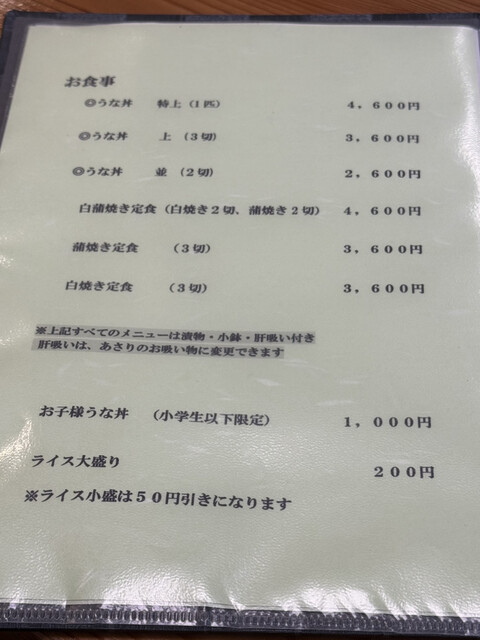 こちらの鰻は関西風の地焼き、パリパリの皮が特徴なのです。いただいたのは、うな丼(上) 3600円 と 白焼き 2800円 シェアすることにしました。本当はこちらの名物メニューの白蒲焼き定食を狙っていたのですが、すでに売り切れていて残念( ; _ ; ) でも内容的にはよく似た構成になっていて良しとしましょう(^ ^)お値段も定食とほぼ変わらないですね。このお店のメニューは鰻の枚数で値段が変わるので、結局は定食でも丼でも単品でも明朗会計なのです。
