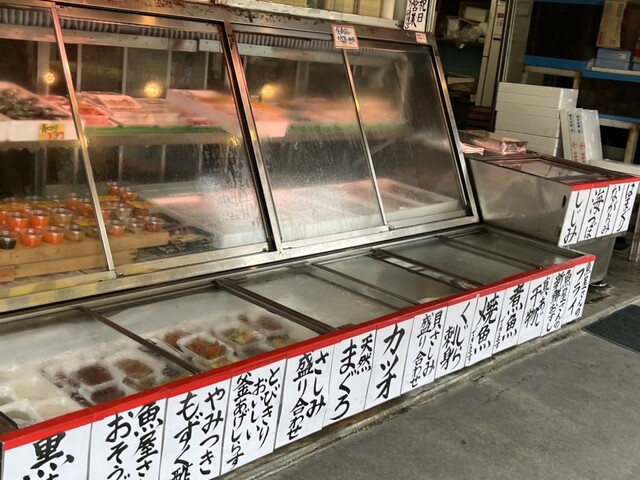 店頭では魅力的な魚系つまみがゴロゴロと並んでいて、これを注文して飲めるのだというから