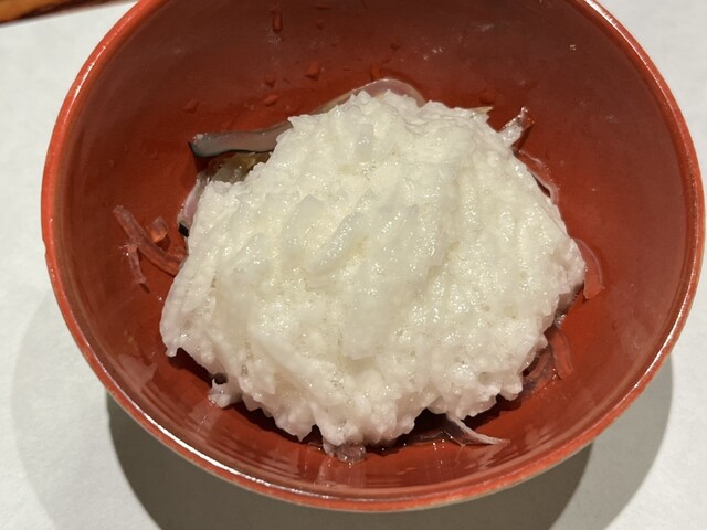淡雪仕立てに添えられた山芋は、シャキシャキとした食感が特徴で、