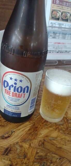 飲み物は瓶ビール大(500円)、つまみにしめさば(350円)、ハムキャ別(350円)。