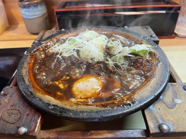 熱々の陶器鍋の上には味噌ダレに泳ぐとんかつと玉子、グツグツ煮立つとんかつのビジュアルは最高です。