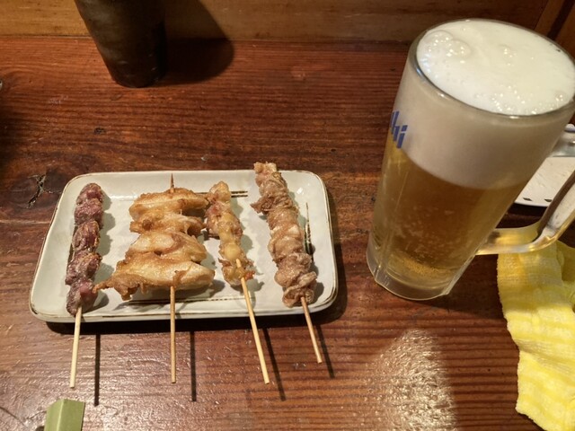 早速ビールと鳥セットを注文して、店内に流れる80年代の曲を聴きながらしばし待つと、10本セットの中で塩の諸々が到着。どれも本当に美味しい。私のお気に入りは皮!それからタレの諸々が到着し、これもやっぱり美味しい。お腹も膨れてきたのに更に6品注文し撃沈!