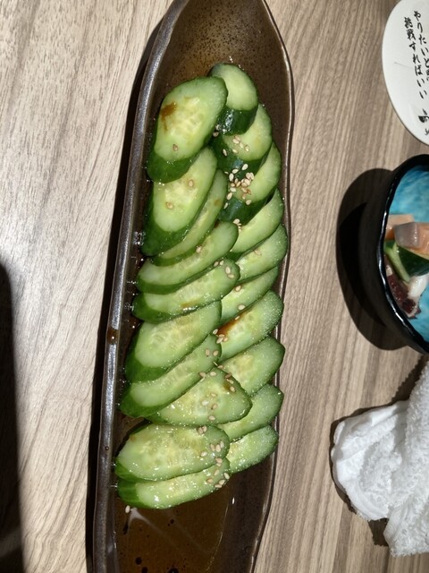 NU茶屋町の南側の通りを東へ向かって6分くらいあるいて、電車の高架を通り過ぎて直ぐにあるお店で、1階はカウンターと厨房、2階はテーブル席、3階は個室(たぶん)となっていて、今回私は3名で2階のテーブル席。