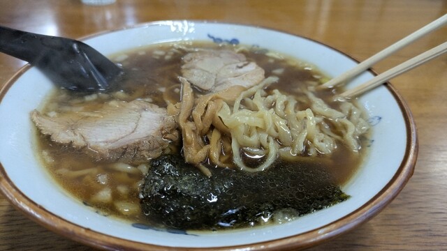 店の方に確認して、やはりと思う。佐野ラーメンの縮れ麺を使っているのだ。本場長崎では、皿うどんにチャンポン麺を使うのと同じ流儀だ。餡が固めなので暴れん坊縮れ麺でもOK。地方の駅前町中華と見くびってはいかん、老舗の個性に気持ちが沸き立つ。