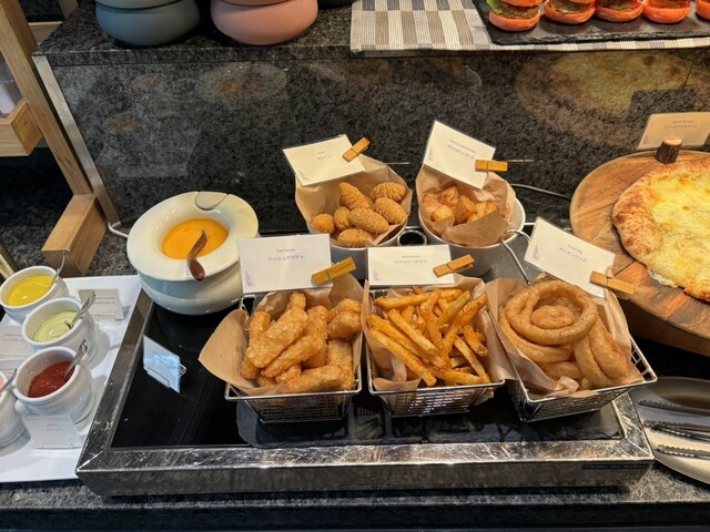 葡萄、キウイ、キャンディチーズが乗った大皿は途中から補充がなく、後で食べようと思っていたが食べられなかった。