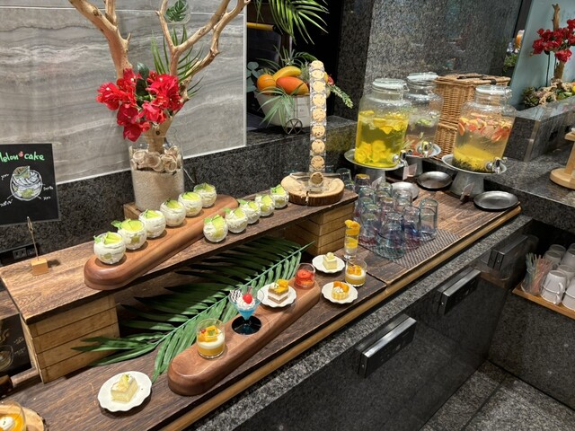 好物のダークチョコ、チーズ、カスタード類を使用したスイーツはなかったものの、マンゴー、レモン、メロン等爽やかな甘さのフルーツを使用していて美味しかった。