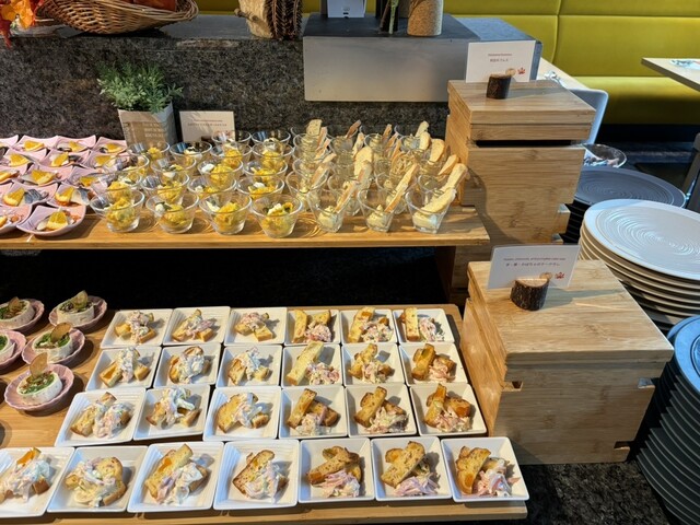 前回は、スイーツコーナーに菓子パン系が籠盛りで提供されていたが、今回は一つもなかったのが残念。