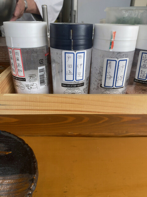 オススメを聞いて高知の塩1種でいただきました。サラサラとした粒の細かいものです。