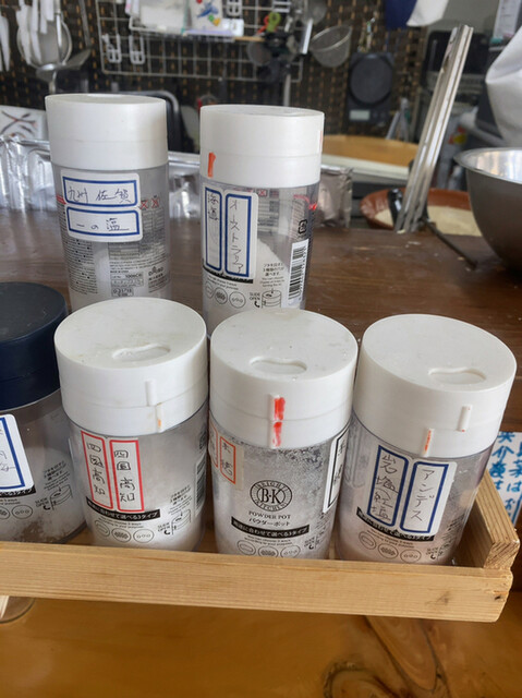 店内見渡すと卓上の塩の種類が凄いです。