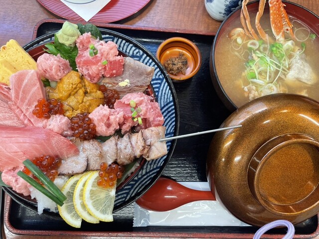 うまい丼(具増し)とあら汁を注文