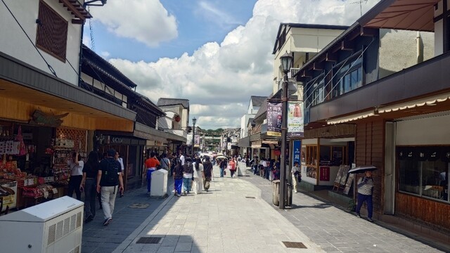 太宰府天満宮の参道にある、梅が枝餅の有名店、かさの家の食事ができる姉妹店です。かさの家の前にあります。