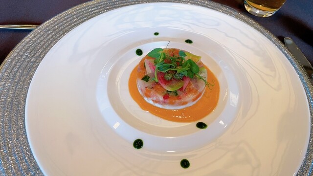 晴天で新緑が美しく、庭散策もできて、素敵な会場。お料理は新郎新婦がこだわりカスタマイズされたとのこと、演出などLIVEキッチンもあり、スタッフ対応も素晴らしく、あっという間の2.5時間。