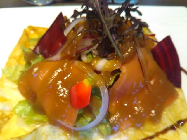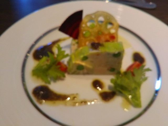 前菜は、春野菜とサーモンのガレット、若鶏とジャガイモのテリーヌ。