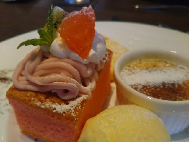 デザートは、2種選べてクレームブリュレと桜のモンブランにしました。相方さんは桜のモンブランと黒ごまのブランマンジュ。