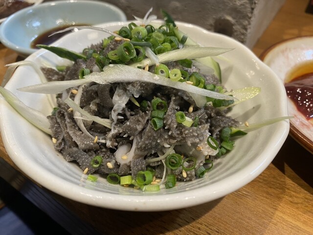 席に通してもらい、ドリンク注文後にメニューを注文。やはりなかった。まあ想定内。特選ハラミ、特選サガリ、上ミノ、上タン厚、センマイ刺し、ギァラを注文。今日はノンアルで。