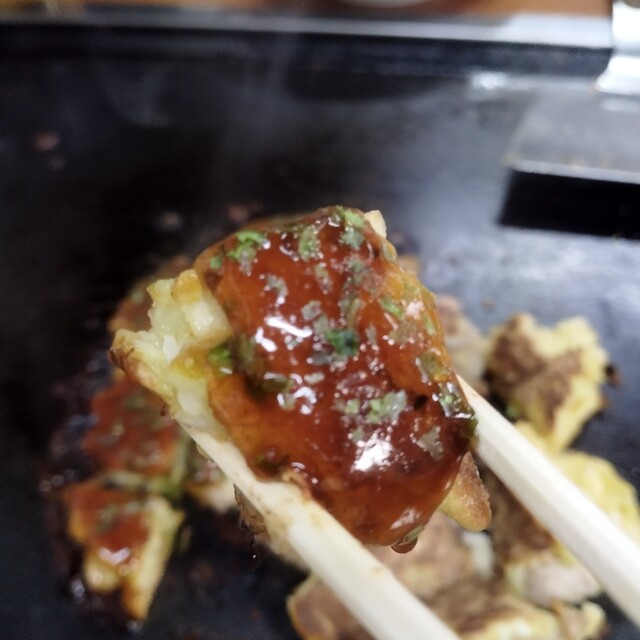 どて焼き1本90円柔らかくてお味噌がめちゃくちゃ美味しかった!お好み焼きは豚玉と牡蠣玉にしました!半分ソース半分素焼きで塩で食べたり どて焼きのお味噌つけて食べてもめちゃ美味しかった!
