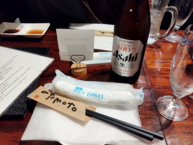 後初めてお店のLINE登録をするとドリンク1杯サービス(瓶のお酒はダメ)次回そのクーポンを使いたいです!トイレの中にQRコードありました!