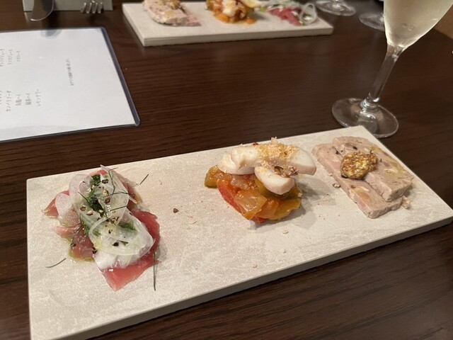 ・カルパッチョ、タコのラタトゥユ、パテドカンパーニュ