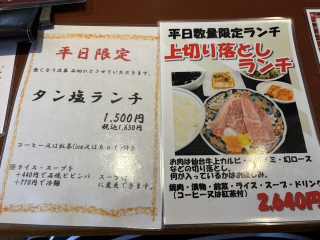 BランチはAランチのお肉の1.5倍