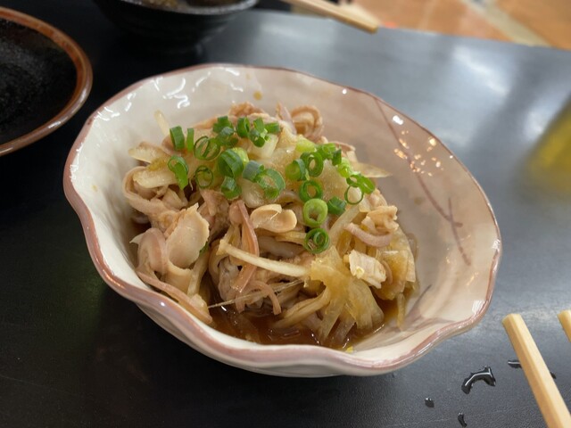 先に注文したこれもオススメという酢もつは、さっぱりとおろしポン酢がかかり、コリコリとした内臓の食感が良いですね。