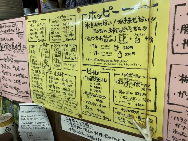 漁港近くだけあり魚介系が充実してますが、モツ系を主体に変わり種もかなり見受けられます。