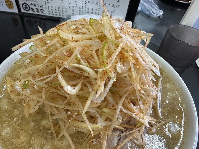 大振りな肉々しいチャーシューに、追加した辛ネギのシャッキリピリ辛さが益々食欲を引き立てる好感触。