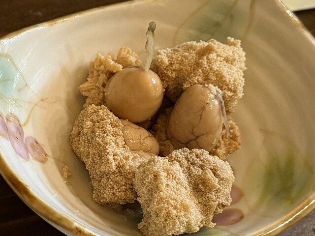 カウンター上の惣菜を3〜4品いただきます。煮物や焼き物など、どれも本当に旨い!