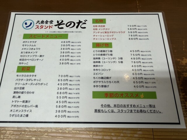 定食メインのメニューです。もちろん飲み屋として昼から飲めます!