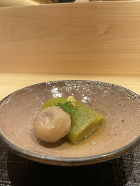 【淀大根】★★★★★★ 鯛の中骨の出汁の円やかで膨よかで包み込まれるような素晴らしい旨さ。 大根の香り、甘さと清涼感、そして黒七味の締まりのバランスがここぞいうジャストの着地点!
