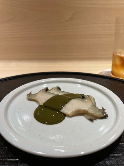 蝦夷鮑もコリコリとした食感からミネラル感ある香りと味わいが清涼感を増幅させ、蒸し暑い初夏の時期にぴったりの一品目。