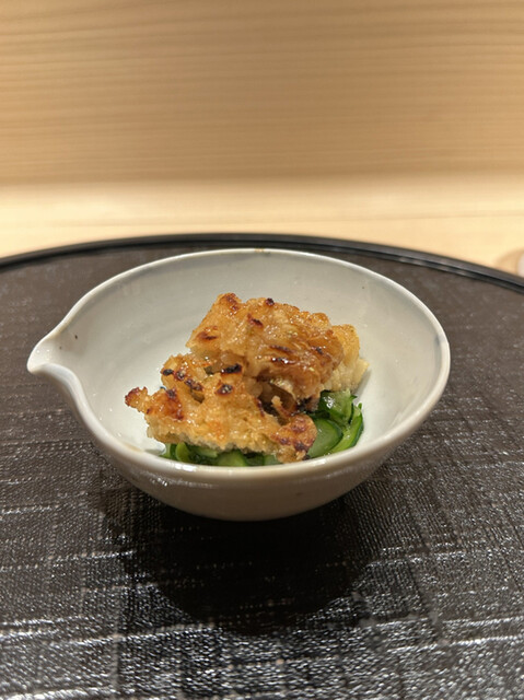【天然虎河豚①白子】★★★★★ 厚みある皮の香ばしさから天然ならではの旨味がぐっと広がり、そこから中のクリーミーな味わいにつながり、そして長い余韻に浸る。