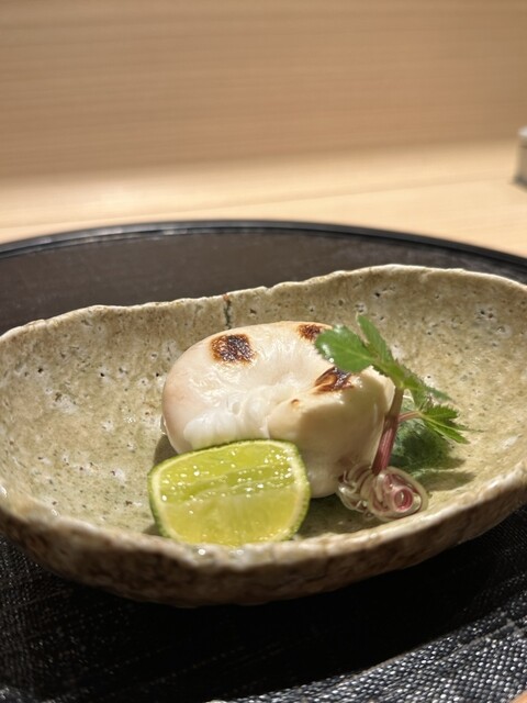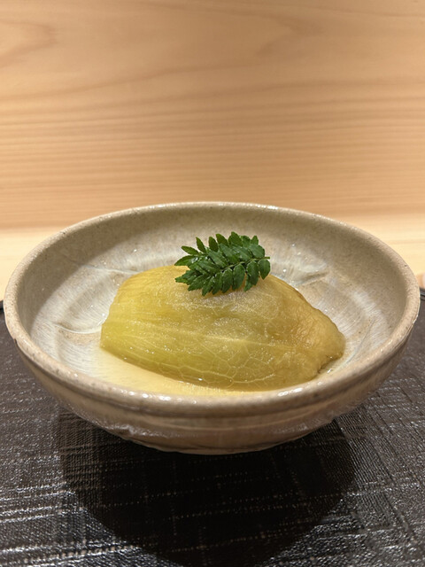 柔らかな炭のかおり。程よく繊維感を残した賀茂茄子は、噛むと綺麗な味わいと出汁の旨味がじゅんわりと溢れてくる。