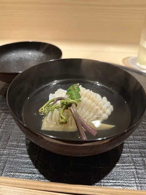 【お椀・焼きグジ】★★★★★★ 透き通るようでありながら、旨味にまろやかさ厚みがあり、口からグーーっと沁みて全身にトルクある味わいが駆け巡るようなお出汁。 一口で整うような極上美味しさ。