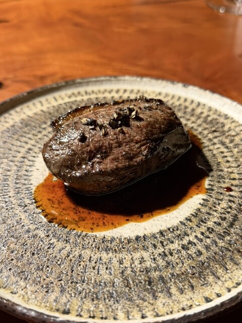 その生き生きとした食感からジューシーに滲んでくる柔らかな旨味は、纏った炭の香りで深まり、ソースの渋旨さと酸味で引き立てられ、