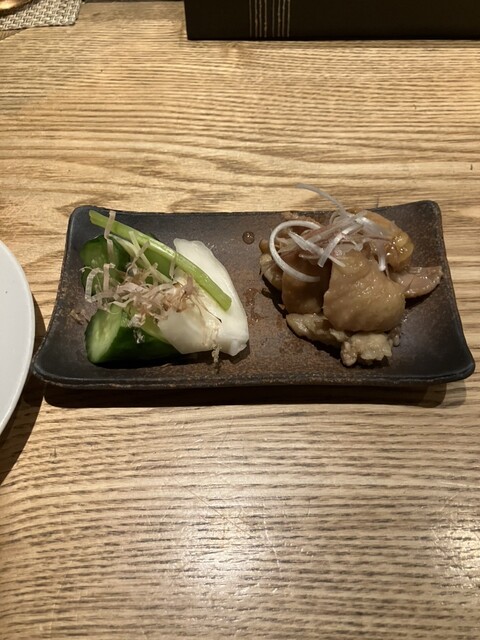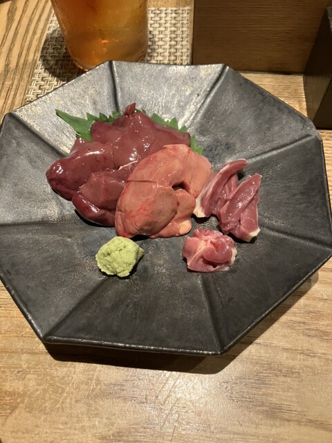 以前から行きたくて予約した鳥史さん。赤坂の路地を少し入った所にあります。店内はモダンでとてもお洒落で落ち着きます。店主の方もお若く、ユニコーンのEBIを思わせるようなベビーフェイス。飲み物をオーダーすると、「本日は新鮮な生の白レバがありますが」と言われ、断る理由もないでしょう!ここはお願いします!の一言。箸休めのぬか漬けを食べながらのビール。待ってました〜〜!新鮮な白レバのお刺身!あ〜〜鳥史さん来て良かった〜。焼鳥のコースは真ん中の史コースを頂きました。少しずつ出されるので以外とお腹一杯に!その中でもメスのボンジリらしいミサキというのがとても美味しくお代わりをしてしまいました。こんなお店でお洒落に焼鳥食べるのもいいですね!デートにも最適ですよ!近いうちに再訪したいと思います。鳥史さんの雰囲気に飲まれて肝心な焼鳥の写真は失念。