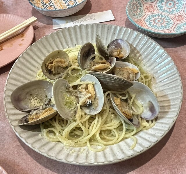 これに合わせて、締めに大アサリのボンゴレ・ビアンコとイカ墨のリゾット。