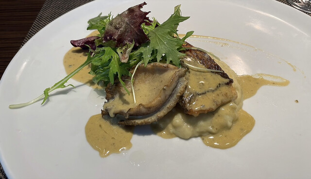 お魚は鯛と鮑のポアレに鮑の肝ソース