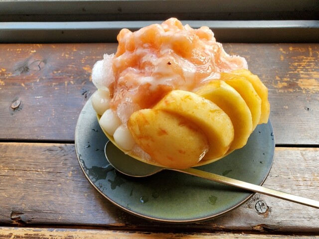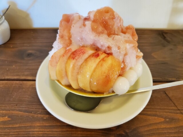 五条烏丸のかき氷店の果肉たっぷり桃氷