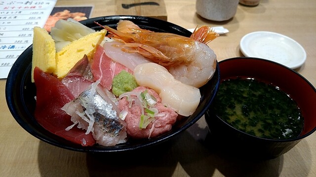 海鮮丼にお椀がついてくる上、大盛り無料!ということでここに決定。12時半でしたが五分程度待っただけ。店員さんの対応も上々。