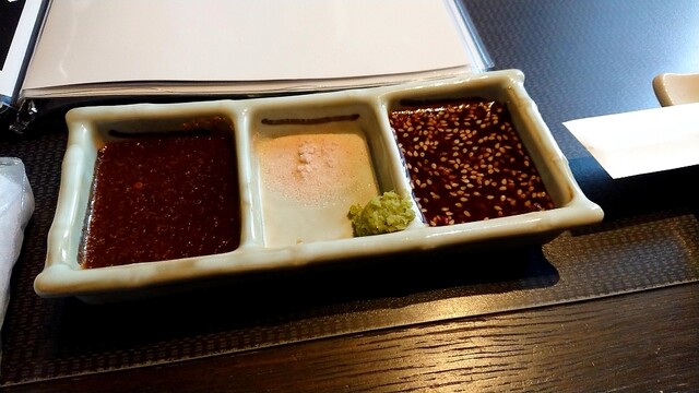 最初のお肉はコリコリタン塩。ネギだれがついてきます。タンの旨味とコリコリ食感がたまりません!