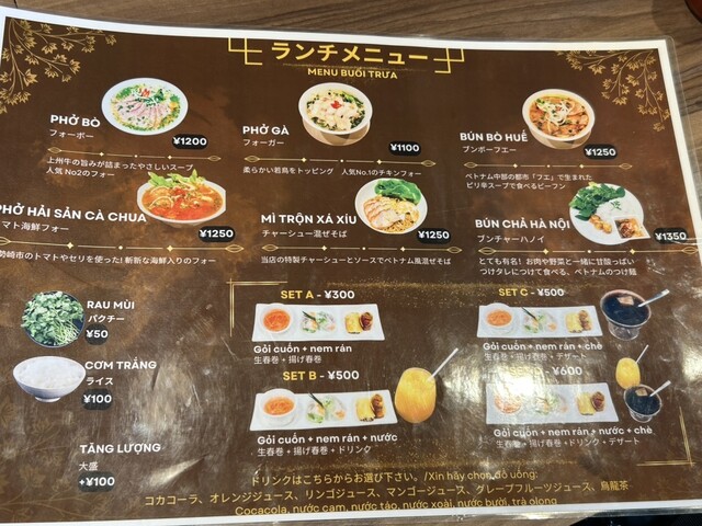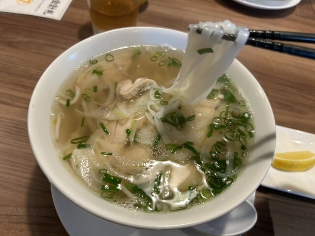 日曜日のランチに妻と伺いました。私たち以外のお客さんはベトナム人風でした。私が人気No. 1と書いてあったフォーガーを妻がトマト海鮮フォーをいただきました。セットの揚げ春巻きは皮がパリパリで美味しかったです。フォーのスープは優しい味で、卓上の調味料でアレンジして食べる楽しみも有ります。麺は柔らかかったです。鶏肉も多めに入ってました。今回Bセットにしましたが、お水がわりに出てくるお茶が美味しいので、次はデザートのセットにしてみます。