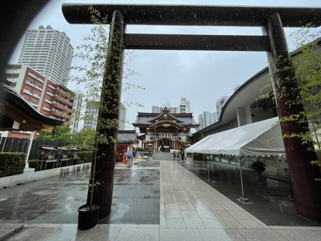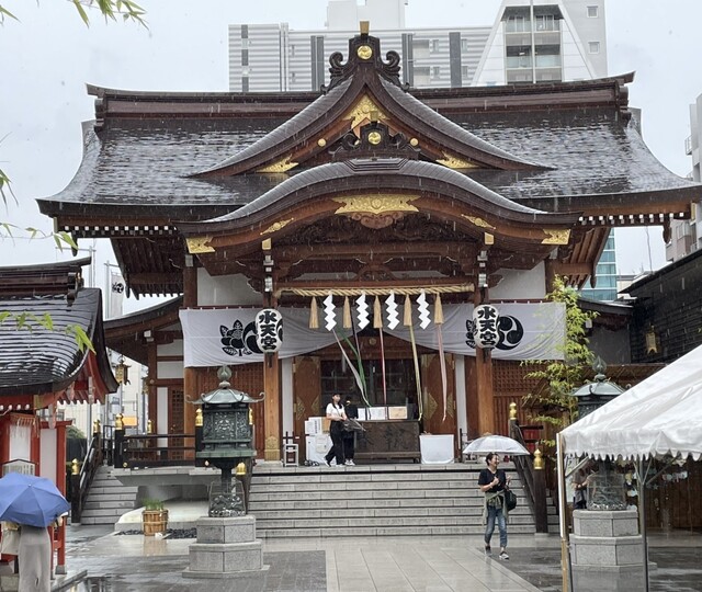 線状降水帯の影響で朝から強い雨ですが、せっかく来たのでまずは水天宮へ。こちらは安産や子授けの神様として有名ですね。御礼参りと思われる赤ちゃん連れのご家族が写真撮っていたり、旅行中らしい外国人2組いましたが、流石に土砂降りのため参拝客は少なかったです。私の身の回りには出産を控えている人はいませんが、家族の幸せと健康、末娘の受験を祈願してきました。