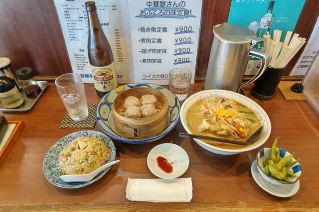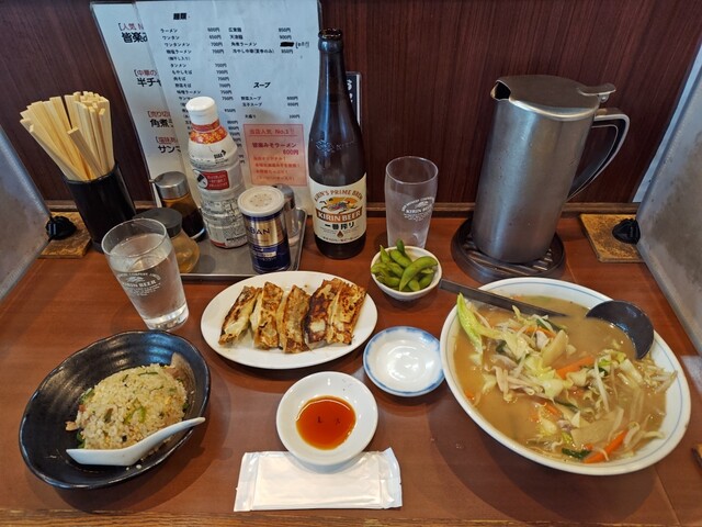 皆楽みそラーメン&ライスセット+焼売+瓶ビール(大)をオーダー(笑)!!