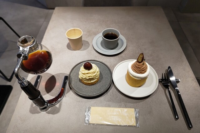 究極のモンブラン+モンブランのショートケーキ+サイフォンコーヒーをオーダー(笑)!!
