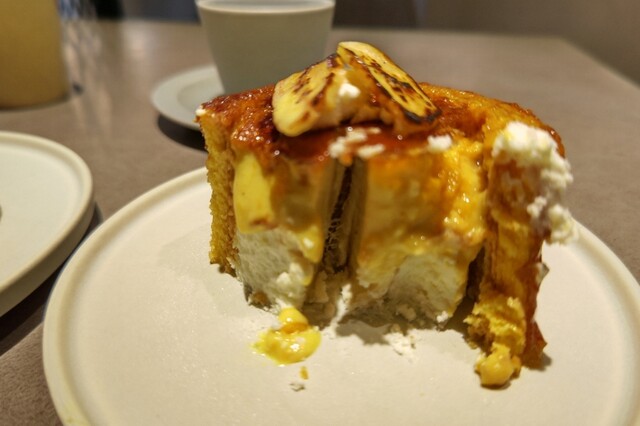まるごとバナナクリームブリュレ+マウントマンゴー+サイフォンコーヒーをオーダー。昨日、来店して取置き依頼をした、小杉ロールバナナを今夜の夕食後の〆のデザートに(笑)!!