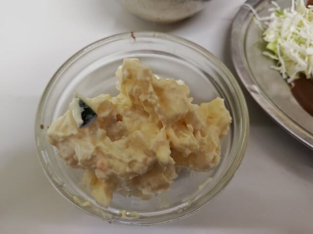 ポテトサラダは、じゃがいもをマッシュ状態の提供ではなく。大胆なサイコロ切り、きゅうりとにんじんが細かく切られているのが少々。ある意味、じゃがいもが主役と分かりやすい表現だ(笑)!!