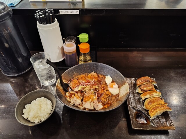 焼餃子も美味しい、〆の小ライスを麻婆餡と絡めて食べる。麺と食べる際は、半熟玉子を崩さずに残し、小ライスを食べる際に崩して食べる。二度、楽しめる美味しさ(笑)!!