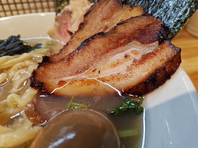 麺は、太麺タイプの貝の出汁があっさり。チャーシュー2種等の具材もしっかりしている(笑)!!