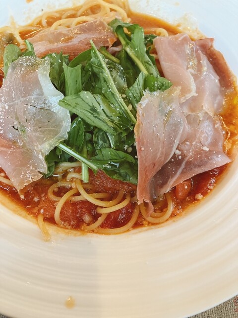 一抹の不安も抱えつつ、毎回必ずオーダーする「貝柱のクリームソース」のパスタ。それと今回初めての「季節の野菜」「ルッコラ菜と生ハムのトマトソースパルミジャーノ」パスタを注文。パスタはまるで洗面器のような大きさの器にタップリ入って出てきます。それぞれ普通のパスタ屋さんの1.5倍あるイメージです。具もエビやでっかいホタテ貝柱などがゴロゴロ入ってます。この味!濃厚でめちゃくちゃ美味しいです。やっぱりクリームソース系のパスタではここ以上のものに出会えたことはないですね。この量と内容と味で1600円はかなりお得です。物価高で昔に比べたら全体的に値上がりしてますが、すごく頑張ってくれてると思います。季節の野菜パスタはオイルベースのあっさり目、こちらも色んな野菜がたくさん入ってます。生ハムパスタはちょっと塩味が強かったかな?
