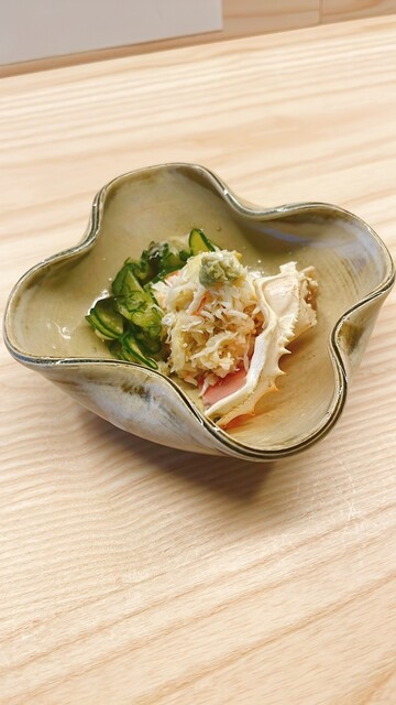 まず登場したのは、紅ズワイガニ酢の物添え。ほんのり甘酸っぱくて、最初の一品から美味しいが止まらない〜♡